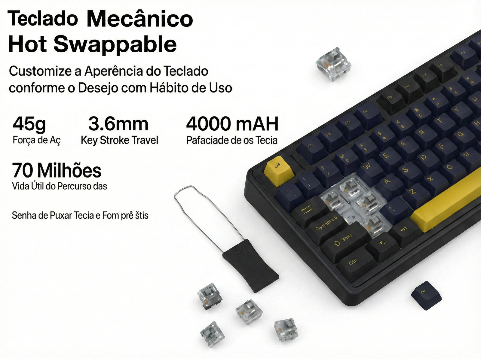cores e teclas PBT de alta resistência, feitas para durar anos sem desgaste.